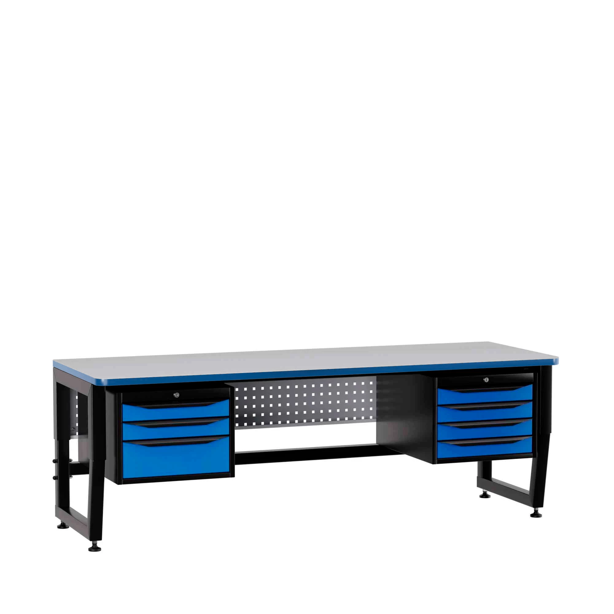 Столешница на основе МДФ толщиной 30 мм обеспечивает высокую механическую прочность и надежность. Поверхность монтажного стола выполнена из специального HPL пластика толщиной 1 мм, этот материал отличается высокой износостойкостью, устойчивостью к механическим повреждениям, влаге и химическим веществам. Нижняя часть столешницы изготовлена из БСП пластика толщиной 1 мм, а кромка покрыта ABS пластиком толщиной 2 мм, что обеспечивает дополнительную износостойкость и прочность всей конструкции.