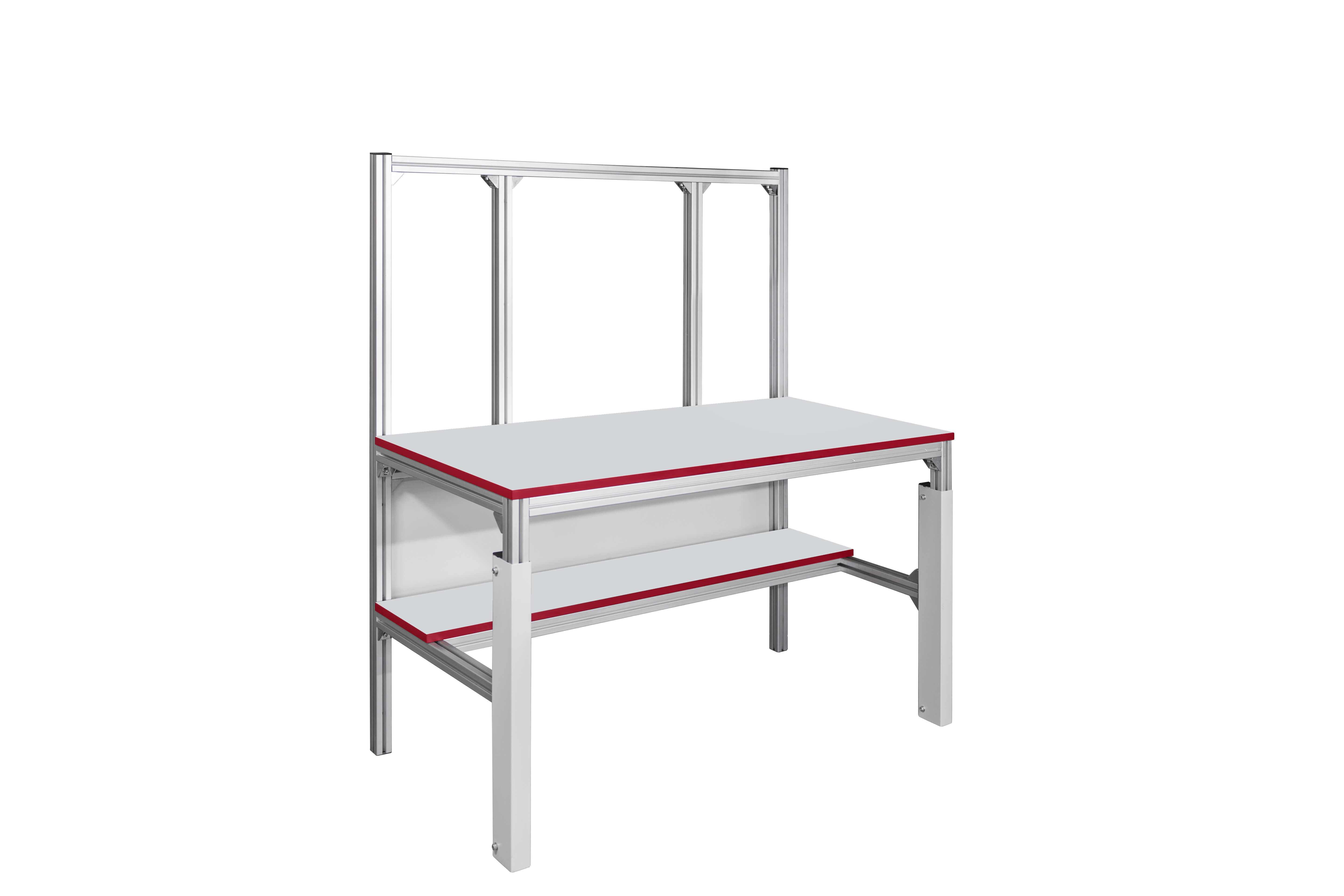 Каркас стола изготовлен из конструкционного профиля. Высота столешницы регулируется в пределах от 750 мм до 950 мм, что позволяет работать сидя и стоя. Распределенная нагрузка на стол — до 300 кг. Конструкция стола позволяет оснастить его дополнительным оборудованием и интегрировать с конвейерами, рольгангами и другими конструкциями и системами.