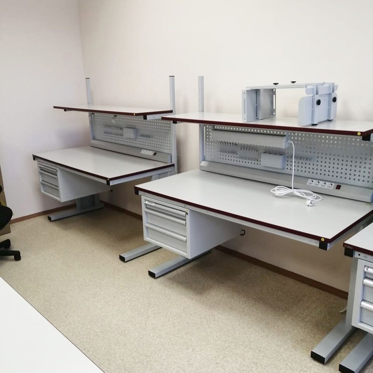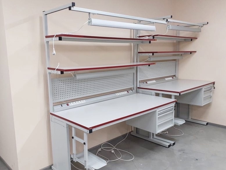 Стол имеет металлический каркас и изготавливается в промышленном и антистатическом исполнении.