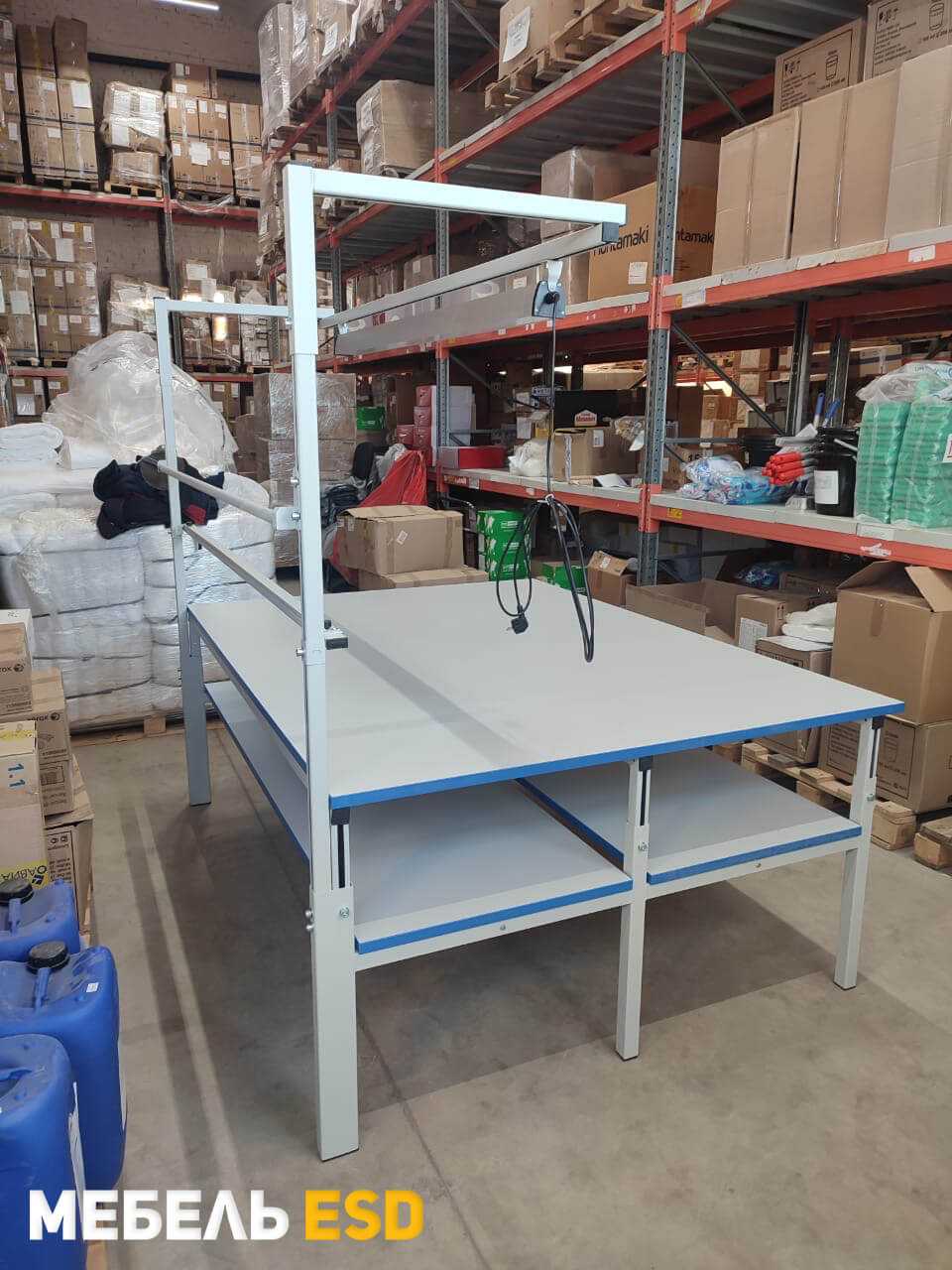 Модульная конструкция дает возможность оснастить раскройный стол дополнительным оборудованием: подвесными тумбами, перфорированными панелями, электропанелями, держателями рулонов, планкой для крепления лотков, освещением рабочей поверхности, угловым столом, ящиком для мелких принадлежностей, крючками для инструментов и другим дополнительным оборудованием и оснащением.