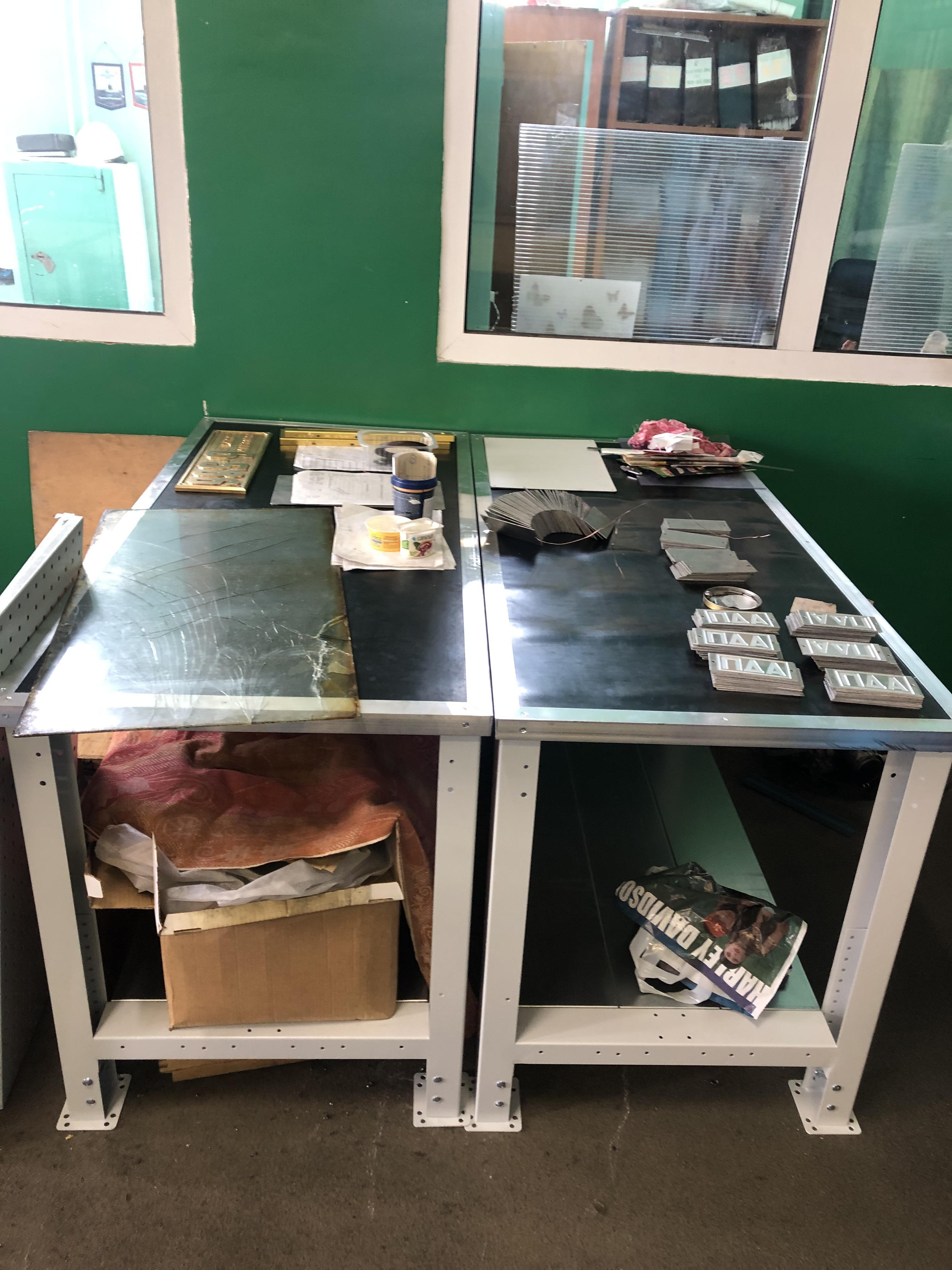 - Основные несущие элементы каркаса столов рабочих выполнены из стали Ст3 толщиной 1,2 мм