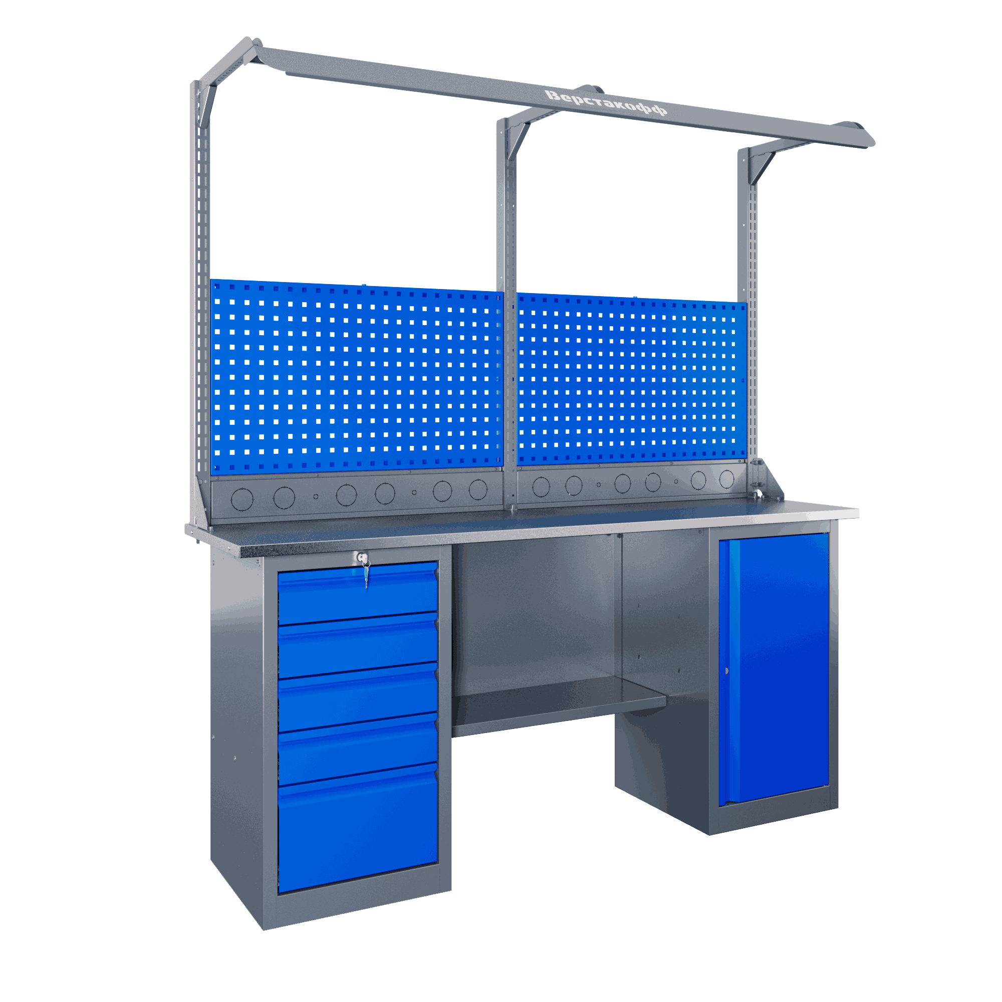 Функциональность конструкции выведена на новый уровень благодаря усиленным тумбам. Выдерживая до 45 кг на ящик, они обеспечивают идеальный порядок, а вместительная полка-стенка фиксирует инструмент в зоне прямой видимости. Перфорация 12х12 мм с шагом 38 мм открывает безграничные возможности для крепления держателей. Особая гордость - выверенная эргономика рабочей зоны. Размеры 1967x1800x500 мм обеспечивают комфорт при выполнении любых операций, а интегрированная подсветка исключает появление теней, что критически важно для точной сборки и контроля качества. Производство осуществляется в России из металла высшего качества (толщина каркаса 0,8 мм), что подтверждается 3-летней гарантией и заявленным сроком эксплуатации в 7 лет.