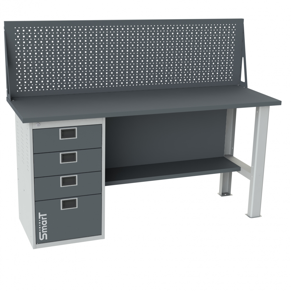 Универсальный металлический верстак серии Smart предназначен для обустройства легких производств, мастерских и гаражей. Все элементы изготовлены из высококачественной листовой стали, а покрытие устойчиво к механическим воздействиям и агрессивным жидкостям.