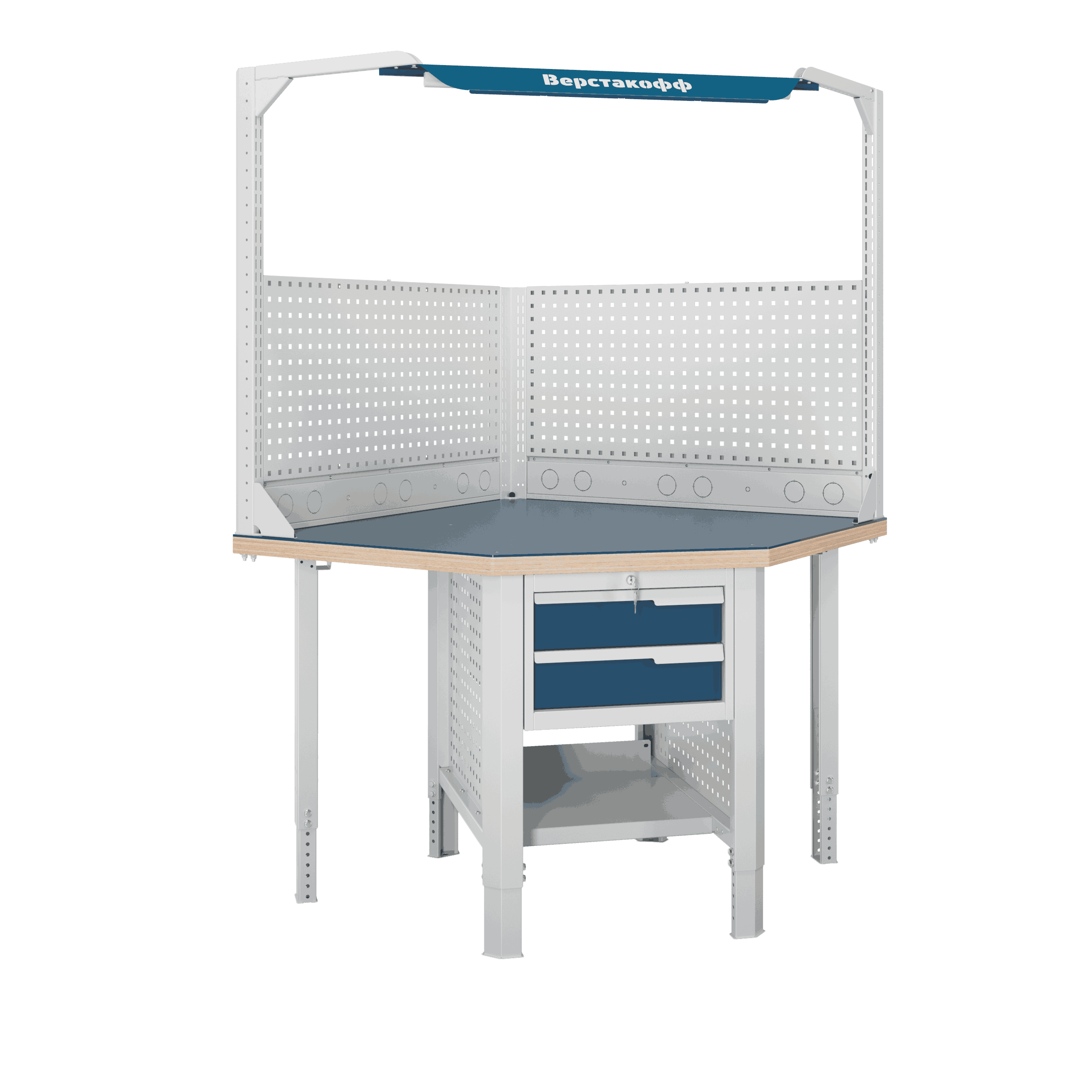Блок стыковки углового верстака серии Constructor U5 разработан для обеспечения максимальной гибкости и надежности, учитывая конструктивные характеристики рабочего помещения. <br />
