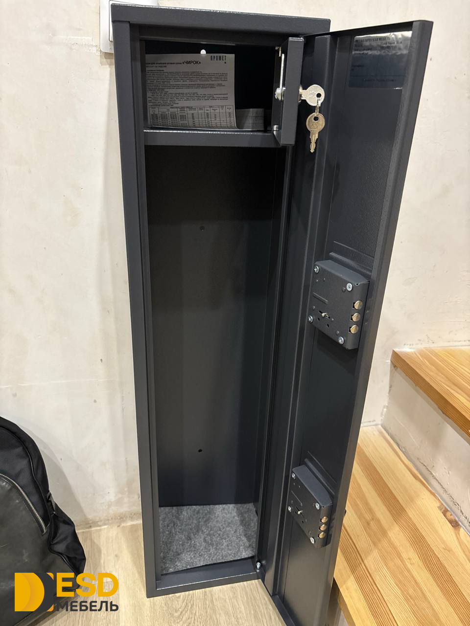 • Во внутреннем пространстве располагается отделение под боеприпасы размерами 146×259×152 мм, запираемое отдельным ключом. Ложементы в комплект не входят.