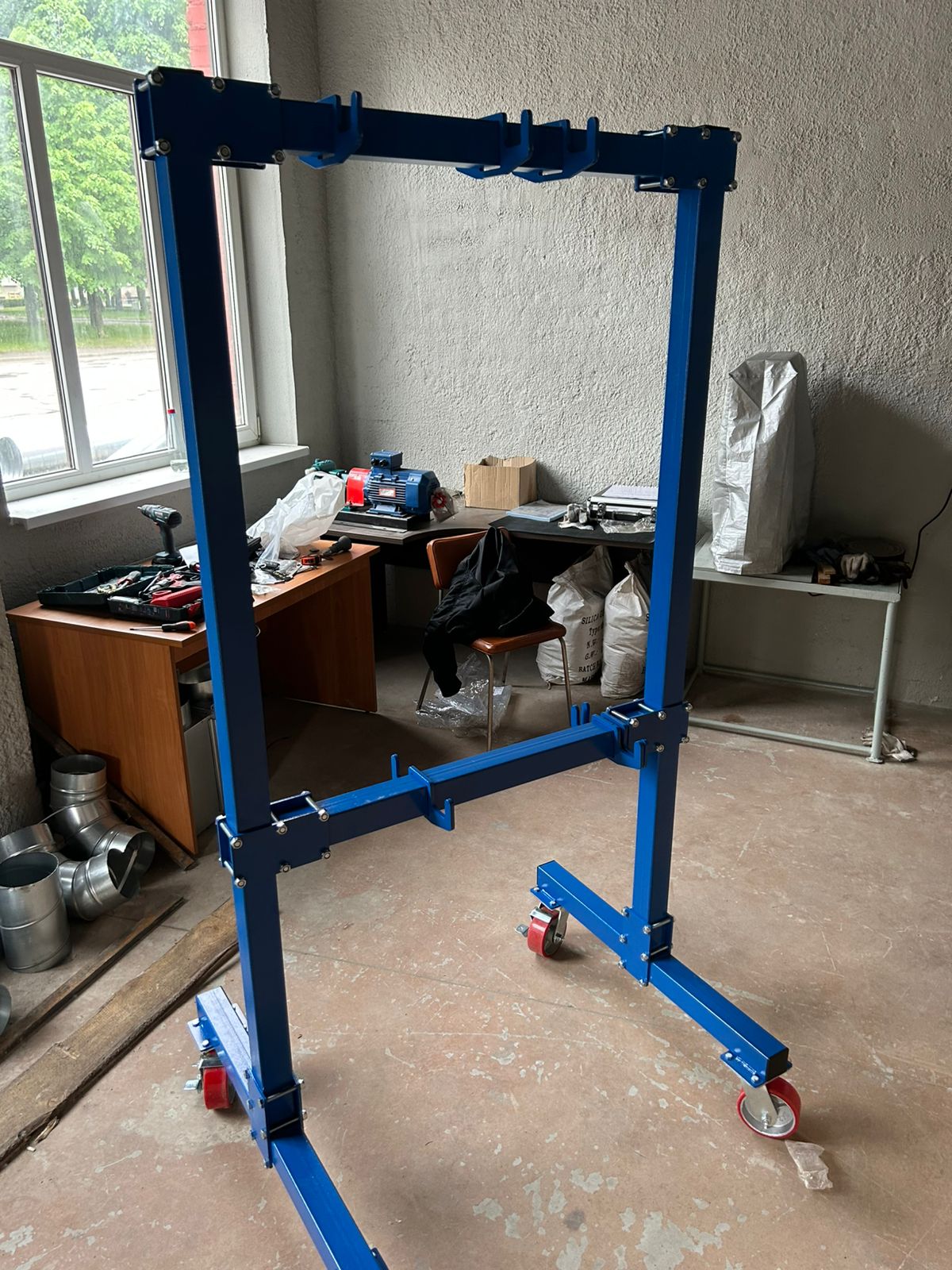 - Стеллаж для хранения строп на колесах может перемещаться из одного производственного помещения в другое.