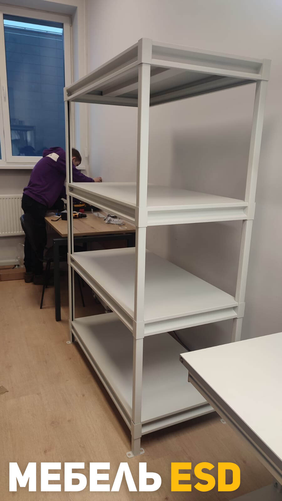 Стеллаж антистатический СУМ ESD окрашен полимерной антистатической порошковой краской, защищающей электронные компоненты от электростатического заряда. В антистатическом исполнении, согласно требованиям стандарта ГОСТ IEC 61340-5-1-2019, на лицевой стороне имеется маркировка