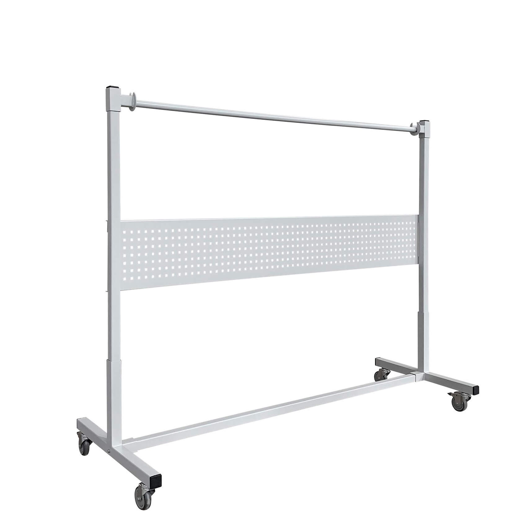 Стойка упаковочная для рулонов может быть использована для размещения и перемещения в рабочем пространстве рулонных материалов, таких как полиэтиленовая и воздушно-пузырчатая пленка, крафт бумага, а также рулонов с тканью. Стойка для рулонов изготовлена из металлического профиля шириной 35 мм и покрыта износостойкой порошковой краской RAL-7035. В стандартный комплект поставки входит: держатель для рулона — 1 шт., перфопанель — 1 шт.
